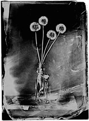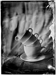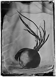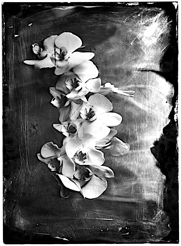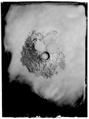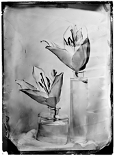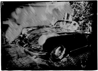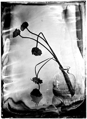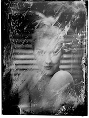 In dieser historischen Technik , mit der sich der Photokünstler Uwe Behrendt seit Jahren intensiv beschäftigt, wird mir einer Mahagoni-Balgenkamera in den Formaten 13x18cm bis 24x30cm wie in den Anfängen der Photographie auf Glasplatten gearbeitet. Diese Platten werden dann mit Collodium und einer lichtempfindlichen Silbernitratschicht versehen und dann im nassen Zustand direkt belichtet. Anschließend muß die noch nasse, aber exponierte Platte in der Dunkelkammer sofort entwickelt und fixiert werden. Es ist eine Ambrotyphie entstanden.