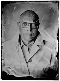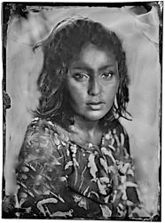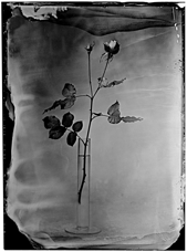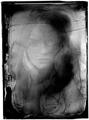 In dieser historischen Technik , mit der sich der Photokünstler Uwe Behrendt seit Jahren intensiv beschäftigt, wird mir einer Mahagoni-Balgenkamera in den Formaten 13x18cm bis 24x30cm wie in den Anfängen der Photographie auf Glasplatten gearbeitet. Diese Platten werden dann mit Collodium und einer lichtempfindlichen Silbernitratschicht versehen und dann im nassen Zustand direkt belichtet. Anschließend muß die noch nasse, aber exponierte Platte in der Dunkelkammer sofort entwickelt und fixiert werden. Es ist eine Ambrotyphie entstanden.